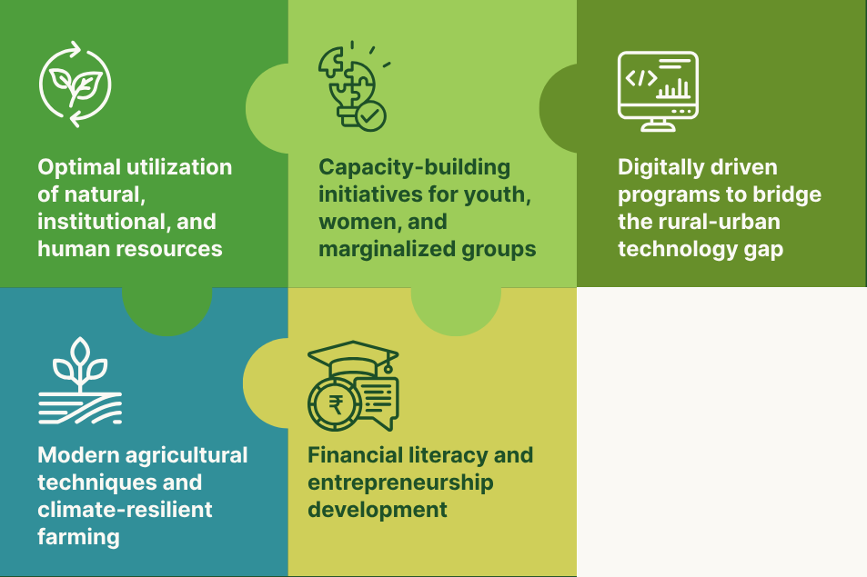 Integrated development remains at the core of our approach, ensuring that solutions are comprehensive and sustainable. We strive to improve socio economic conditions at the village level through: